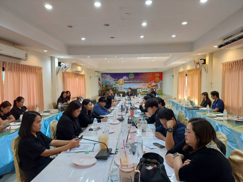 วันที่ 31 ตุลาคม 2568 เวลา 09.00 น.นางโสญรา ขำปู่ นักวิชาการสหกรณ์ชำนาญการพิเศษ รักษาราชการแทนสหกรณ์จังหวัดหนองคาย พร้อมด้วย ผู้อำนวยการกลุ่มงานวิชาการ ผู้อำนวยการกลุ่มส่งเสริมสหกรณ์ ๑-๓ หัวหน้าฝ่ายบริหารทั่วไป และบุคลากรสำนักงานสหกรณ์จังหวัดหนองคาย ประชุมข้าราชการ ลูกจ้างประจำ พนักงานราชการ ประจำเดือนตุลาคม ครั้งที่ 10/2568 เพื่อติดตามแผนการปฏิบัติงานตามแผนงานประจำปี งบประมาณปี พ.ศ.2568 ณ ห้องประชุมมุสิกะมาน สำนักงานสหกรณ์จังหวัดหนองคาย