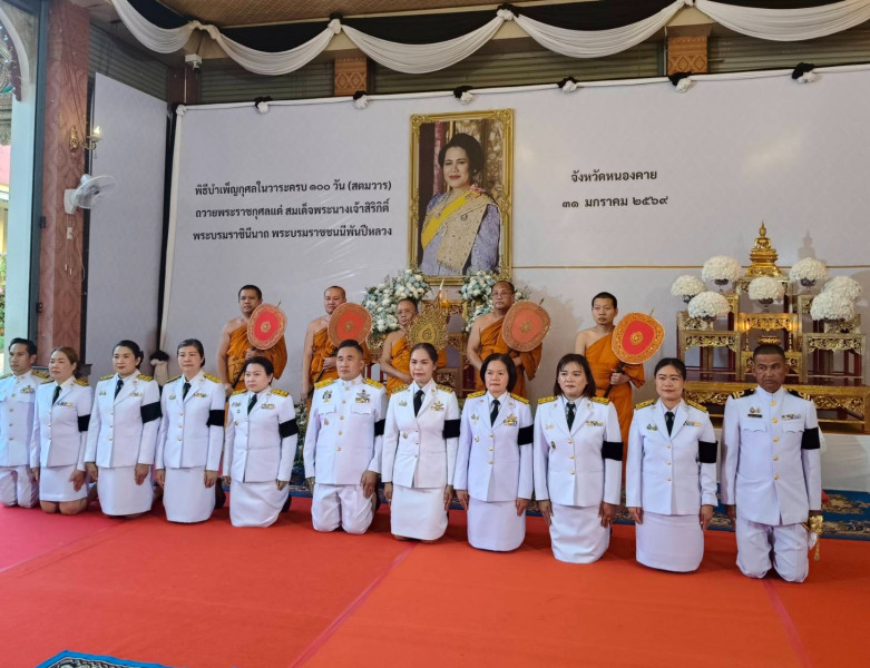 วันที่ 31 มกราคม 2569 เวลา 15.30 น. นางพรสถิตย์ กำไรทอง สหกรณ์จังหวัดหนองคาย พร้อมด้วย นางสาวณัฐญาภรณ์ แพเอี่ยมทรัพย์ ผู้อำนวยการกลุ่มส่งเสริมสหกรณ์ 2 เข้าร่วมพิธีบำเพ็ญกุศล 100 วัน (สตมวาร) แห่งการสวรรคต เพื่ออุทิศถวายเป็นพระราชกุศลแด่ สมเด็จพระนางเจ้าสิริกิติ์ พระบรมราชินีนาถพระบรมราชชนนีพันปีหลวง โดยมีนายศรัณศักด์ ศรีเครือเนตร ผู้ว่าราชการจังหวัดหนองคาย เป็นประธานในพิธี ณ ศาลาพลับพลาหลวงพ่อพระใส วัดโพธิ์ชัย พระอารามหลวง อำเภอเมืองหนองคาย จังหวัดหนองคาย