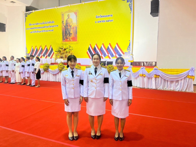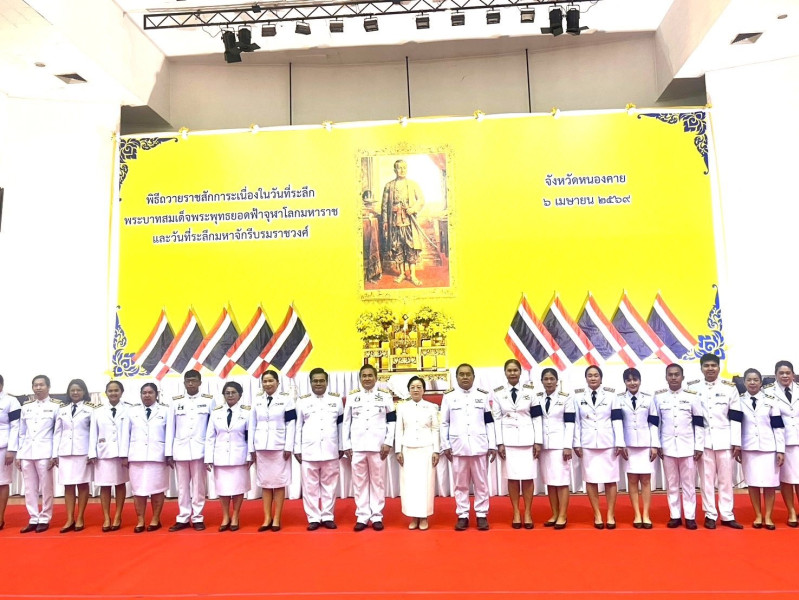 วันที่ 6 เมษายน 2569 เวลา 08.00 น. นางพรสถิตย์ กำไรทอง สหกรณ์จังหวัดหนองคาย มอบหมายให้ นางสาวปัญจรัศม์ ค่าเอ่น ผู้อำนวยการกลุ่มจัดตั้งและส่งเสริมสหกรณ์ พร้อมด้วยบุคลากรกลุ่มจัดตั้งและส่งเสริมสหกรณ์ ร่วมพิธีวางพานพุ่มดอกไม้และถวายราชสดุดีเนื่องในวันที่ระลึก “พระบาทสมเด็จพระพุทธยอดฟ้าจุฬาโลกมหาราช และวันที่ระลึกมหาจักรีบรมราชวงศ์” ประจำปีพุทธศักราช 2569 เพื่อเป็นการแสดงความกตัญญูกตเวทิตาธรรมต่อพระมหากษัตริย์ในพระบรมราชจักรีวงศ์ ที่ทรงมีพระเดชพระคุณเป็นล้นพ้นแก่ชาติไทย ณ หอประชุมประจักษศิลปาคม ศาลากลางจังหวัดหนองคาย อำเภอเมืองหนองคาย จังหวัดหนองคาย โดยมี นายศรัณย์ศักด์ ศรีเครือเนตร ผู้ว่าราชการจังหวัดหนองคาย เป็นประธานในพิธีฯ